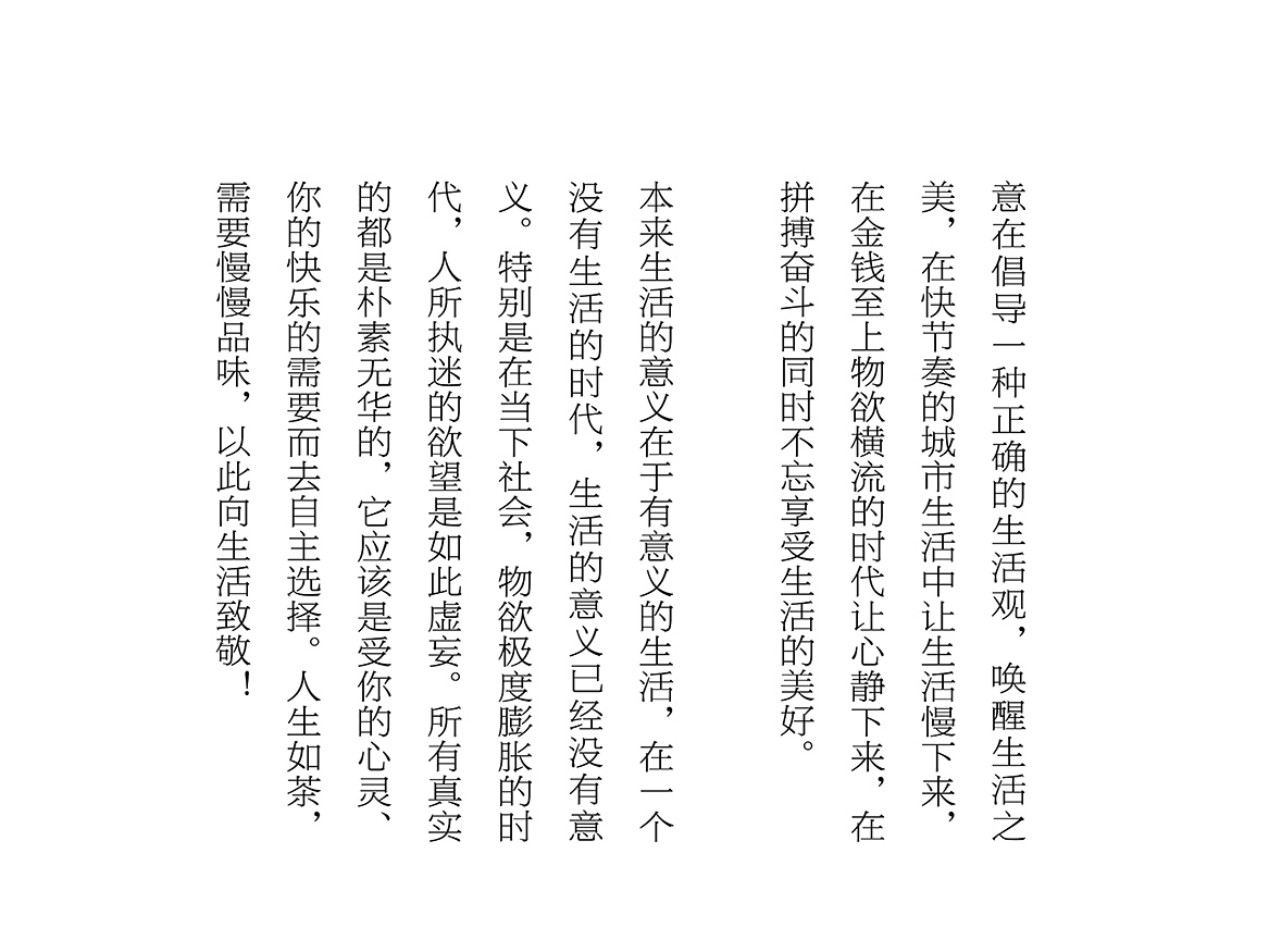 《向生活致敬》——此致人類創造了生活,卻又在探索生活的意義。羨慕不一樣的生活,卻又為一樣的生活而拼命。無論什么時候人們都很忙,但是生活需要不慌不忙。再精彩的世界