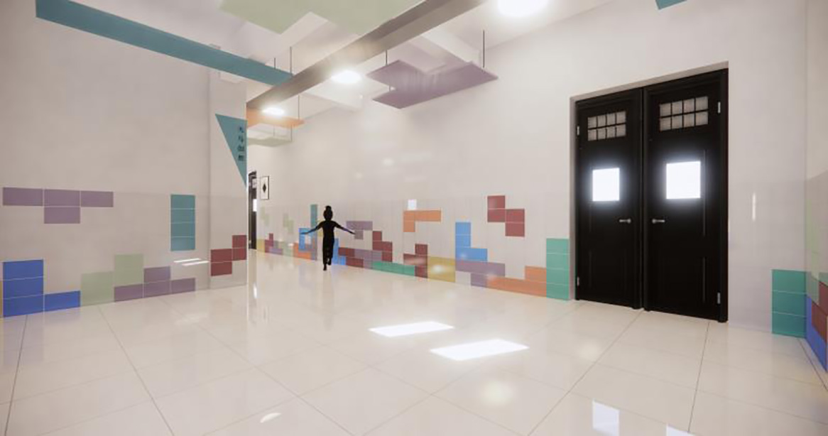 項(xiàng)目組以多彩的俄羅斯方塊和科幻色彩的馬賽克風(fēng)創(chuàng)意巧妙轉(zhuǎn)化,