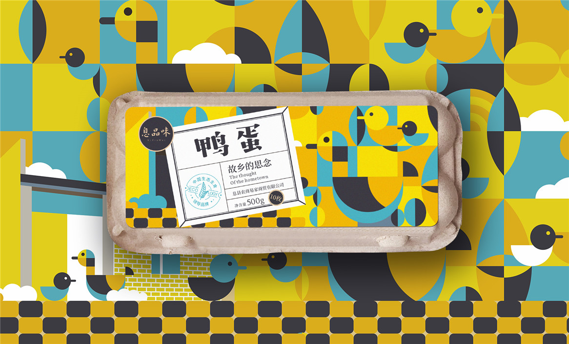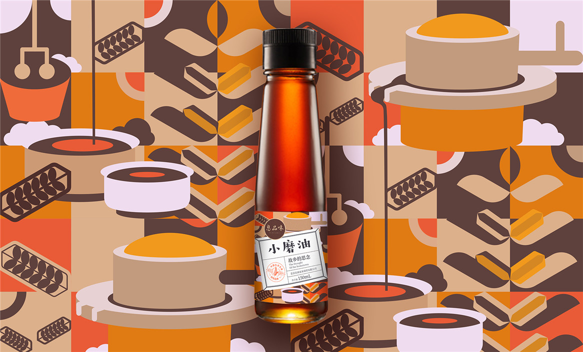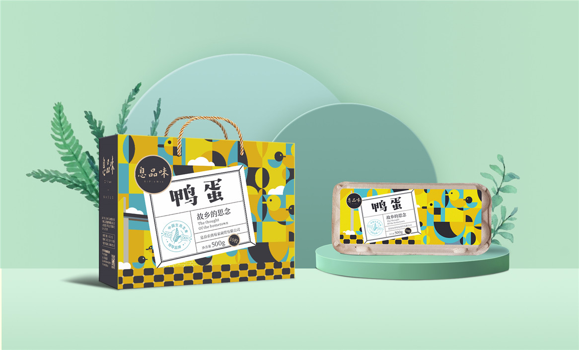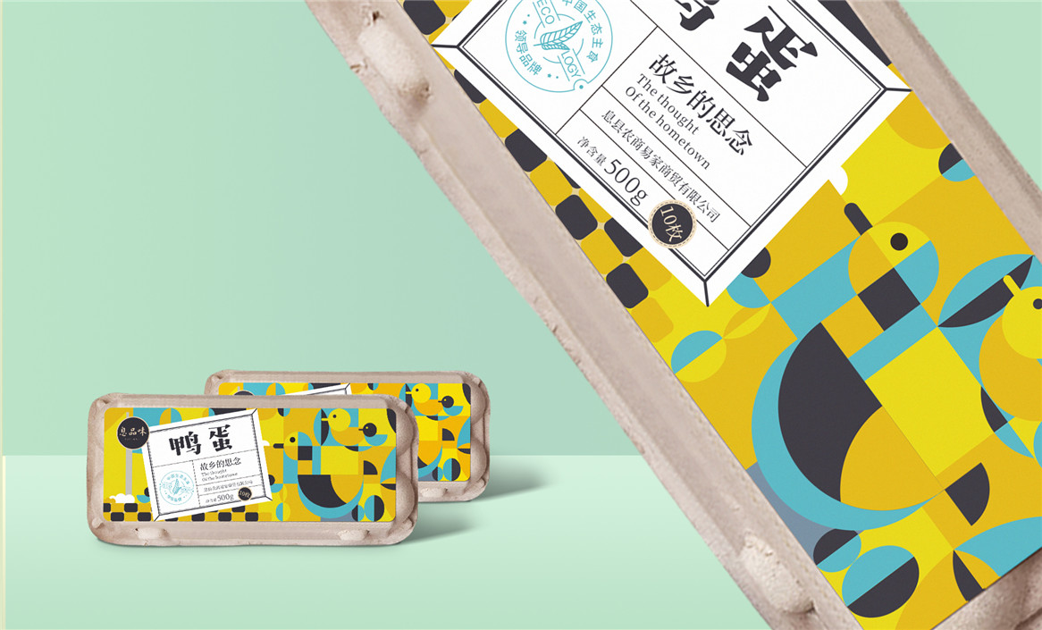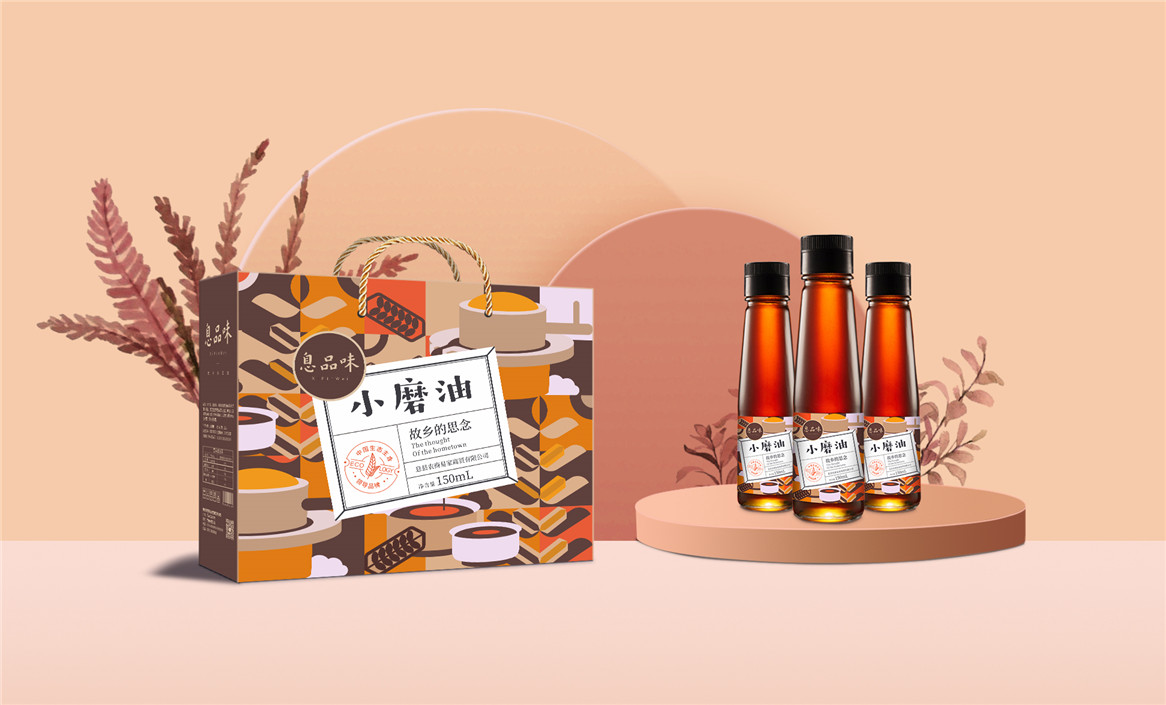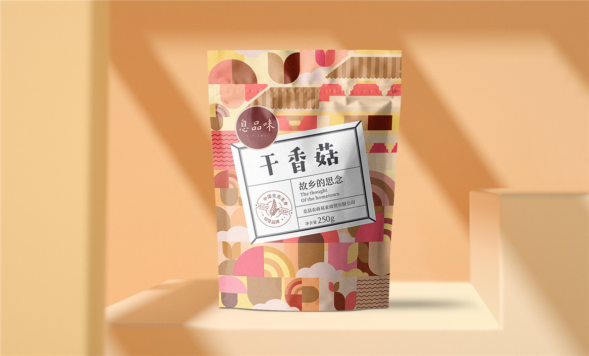 以“故鄉(xiāng)的思念”為品牌溝通語言,從息品味產(chǎn)品生態(tài)特征,地域代表文化、當?shù)孛袼酌耧L等提取包裝設計元素,以平面幾何形態(tài)的方式把產(chǎn)品、產(chǎn)地、相關文化特征進行符號化設計視覺表達,用一種與當下農(nóng)副產(chǎn)品市場不同的包裝表現(xiàn)方式設計,展現(xiàn)綠色新生活,迎合當下消費升級審美升級的新消費趨勢,快速建立品牌認知。