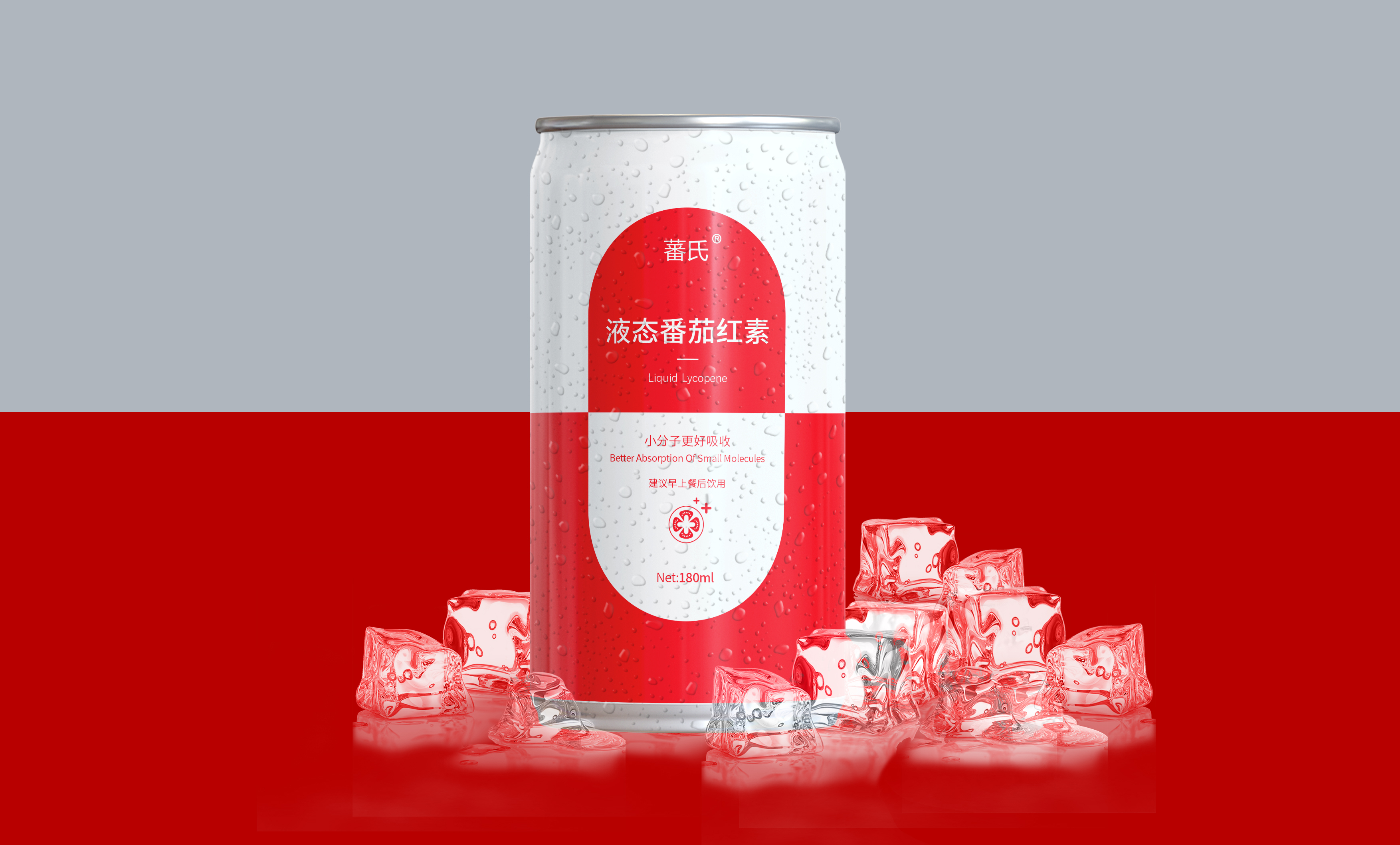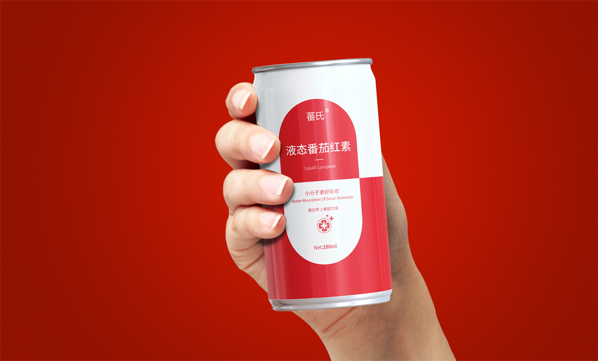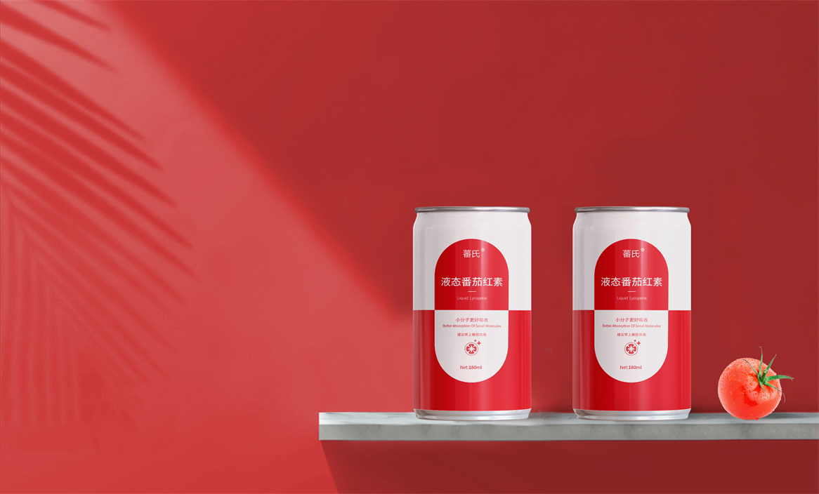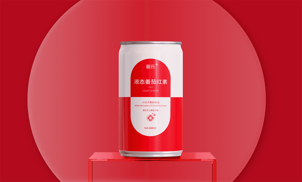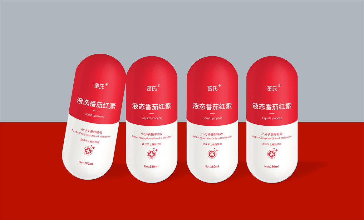 基于品牌策略暨功能性保健飲品的定位和對標產品,分別從產品原材料番茄和對標產品番茄紅素膠囊中提取功能性認知和記憶符號:膠囊和加號。借助人們的對番茄紅素膠囊的認知嫁接于液態番茄紅素,借助人們對醫療符號的認知強調產品及功能性。產品即營銷,產品包裝設計就是要通過包裝傳遞產品價值,塑造品牌認知的超級符號。