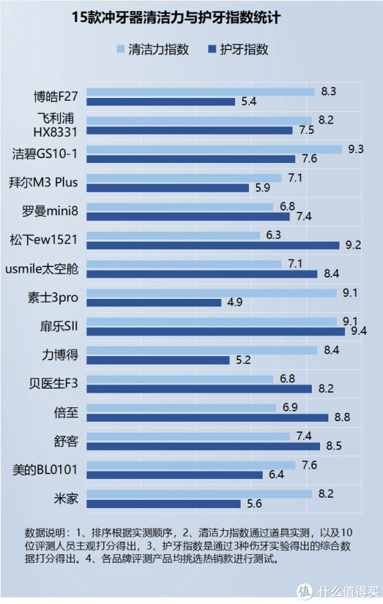 閱讀了沖牙器的好處和壞處,知道了沖牙器的傷牙原因后,我們應該謹慎選擇沖牙器。沖牙器市場存在許多套路,很難辨別,例如:商家常常進行虛假宣傳,將劣質(zhì)產(chǎn)品宣傳成護牙護齦的高質(zhì)量沖牙器。為了幫助大家辨別優(yōu)劣,我從專業(yè)工作室獲得了15款主流沖牙器的評測數(shù)據(jù),并為大家推薦了幾款產(chǎn)品。