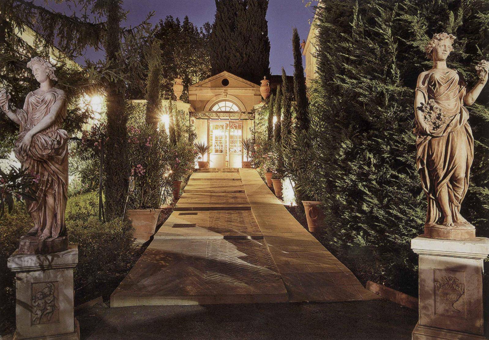 它的配套設施也是一應俱全。設有大理石雕像、噴泉、迷宮、藏酒多達3000瓶的酒窖、冥想室、水族館、室內/室外游泳池、壁球場、電影院和夜店,甚至是室內護城河和水下保險箱,屬于典型的地中海風格,整個莊園是建筑美,藝術美,還有自然美的結合。