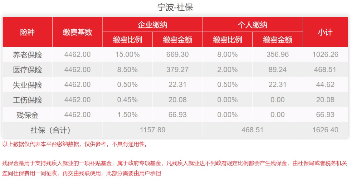 寧波社保一個月是 1626.40,公司部分是 1157.89,個人部分是 468.51。