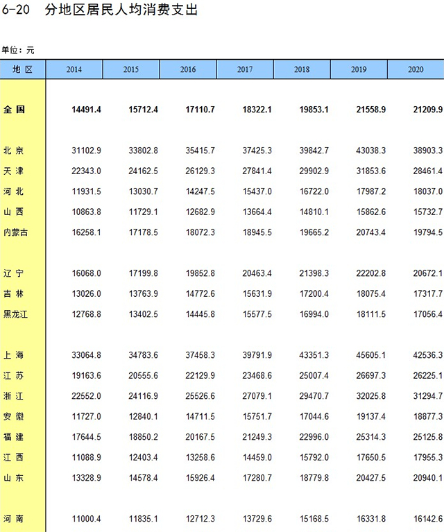 根據(jù)官方數(shù)據(jù),去年我國農(nóng)村居民人均消費(fèi)支出15916元,從全國來看是24100元,城鎮(zhèn)居民則為30307元。不過,我國地區(qū)間經(jīng)濟(jì)發(fā)展并不均衡,就如前年,上海地區(qū)居民人均消費(fèi)支出為42536.3元,而山西為15732.7元。