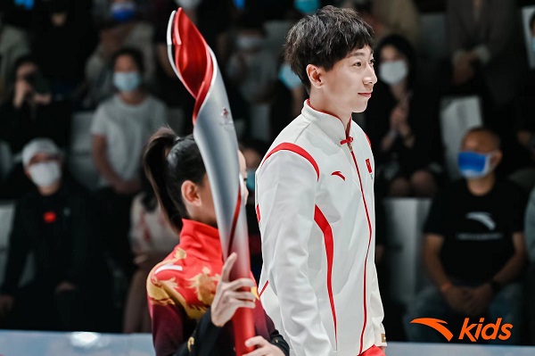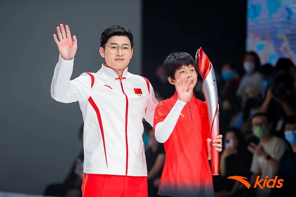 除了展示了55套新品,眾多大眾熟知的專業(yè)冰雪運(yùn)動(dòng)員也亮相此次大秀,將秀場(chǎng)氣氛推向高潮。短道速滑世界冠軍韓天宇、自由式滑雪空中技巧世界冠軍程爽、中國(guó)冰壺國(guó)家隊(duì)成員許靜韜,手持象征奧運(yùn)精神的火炬登場(chǎng),他們將火炬?zhèn)鬟f給共同登場(chǎng)的新生們,也代表著奧運(yùn)精神的薪火相傳。