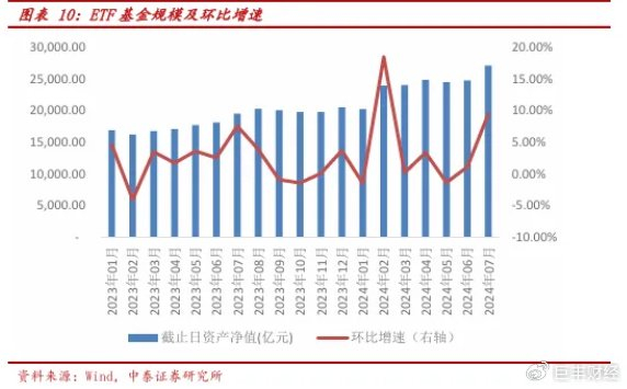 當前滬深兩市日成交額維持在5000億左右,整體萎縮之下,典型的存量資金博弈。而在此之下,根據中泰證券的跟蹤研究,二季度以來,尤其是7月以來ETF基金規模進一步擴大,增速進一步加快,主要是以滬深300為代表的寬基指數增長較多。而作為滬深300絕對的權重,銀行股顯著受益。