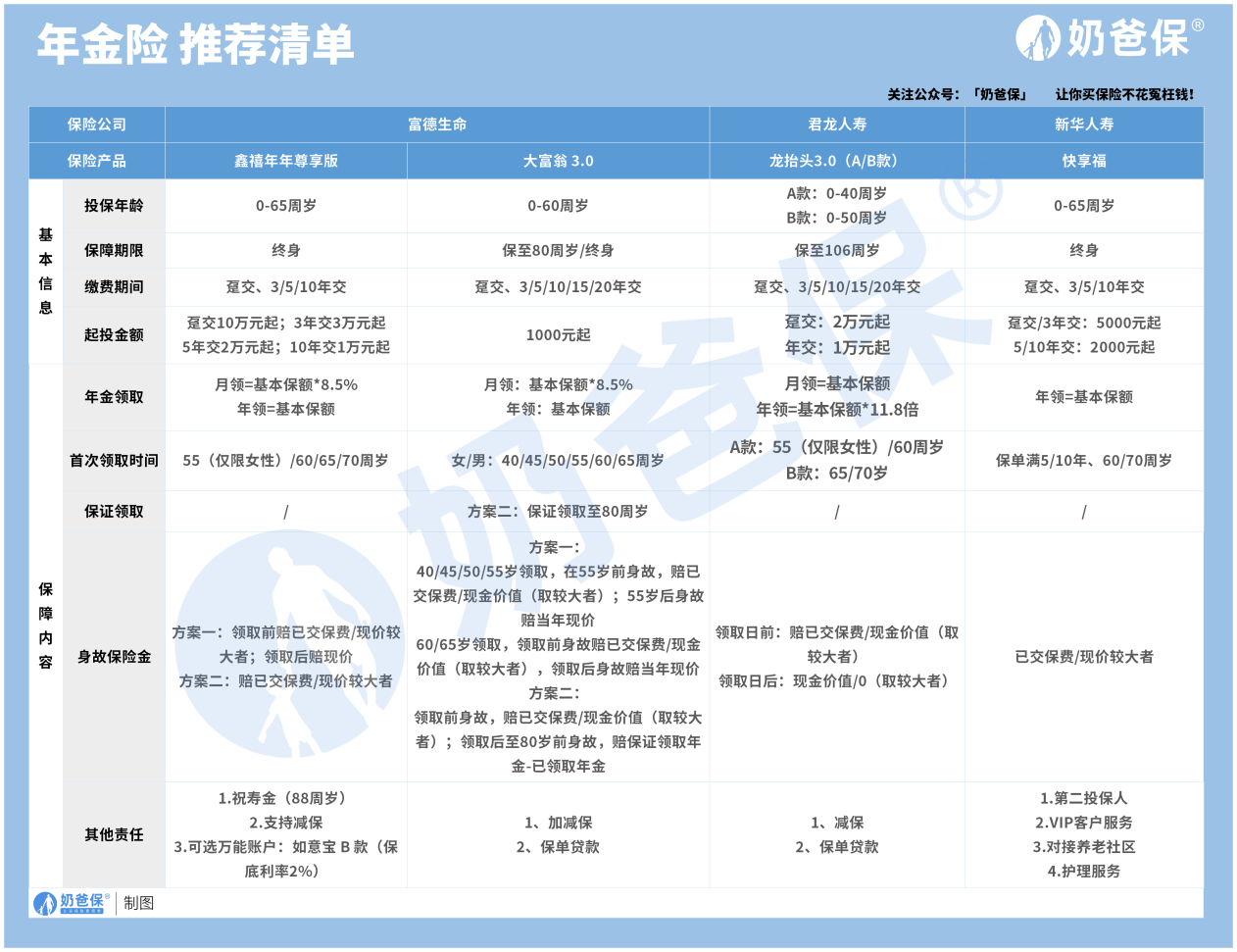 上圖展示的是預定利率3.0%市場中比較值得購買的幾款年金險產品。